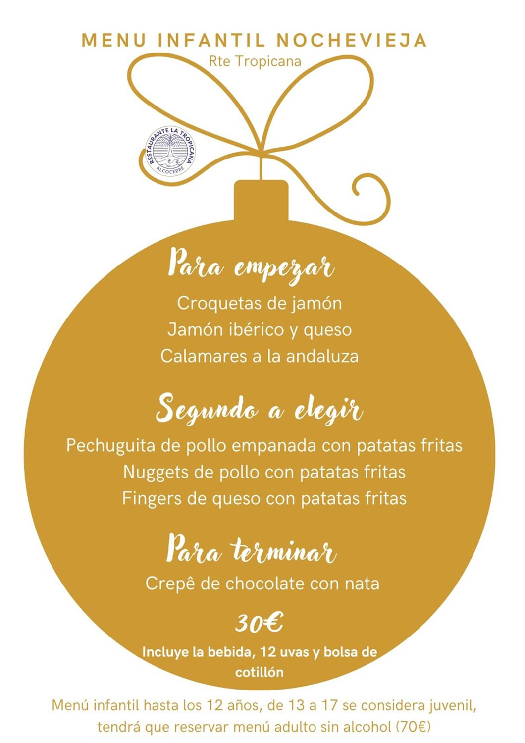 Menú Niños de Nochevieja 2025